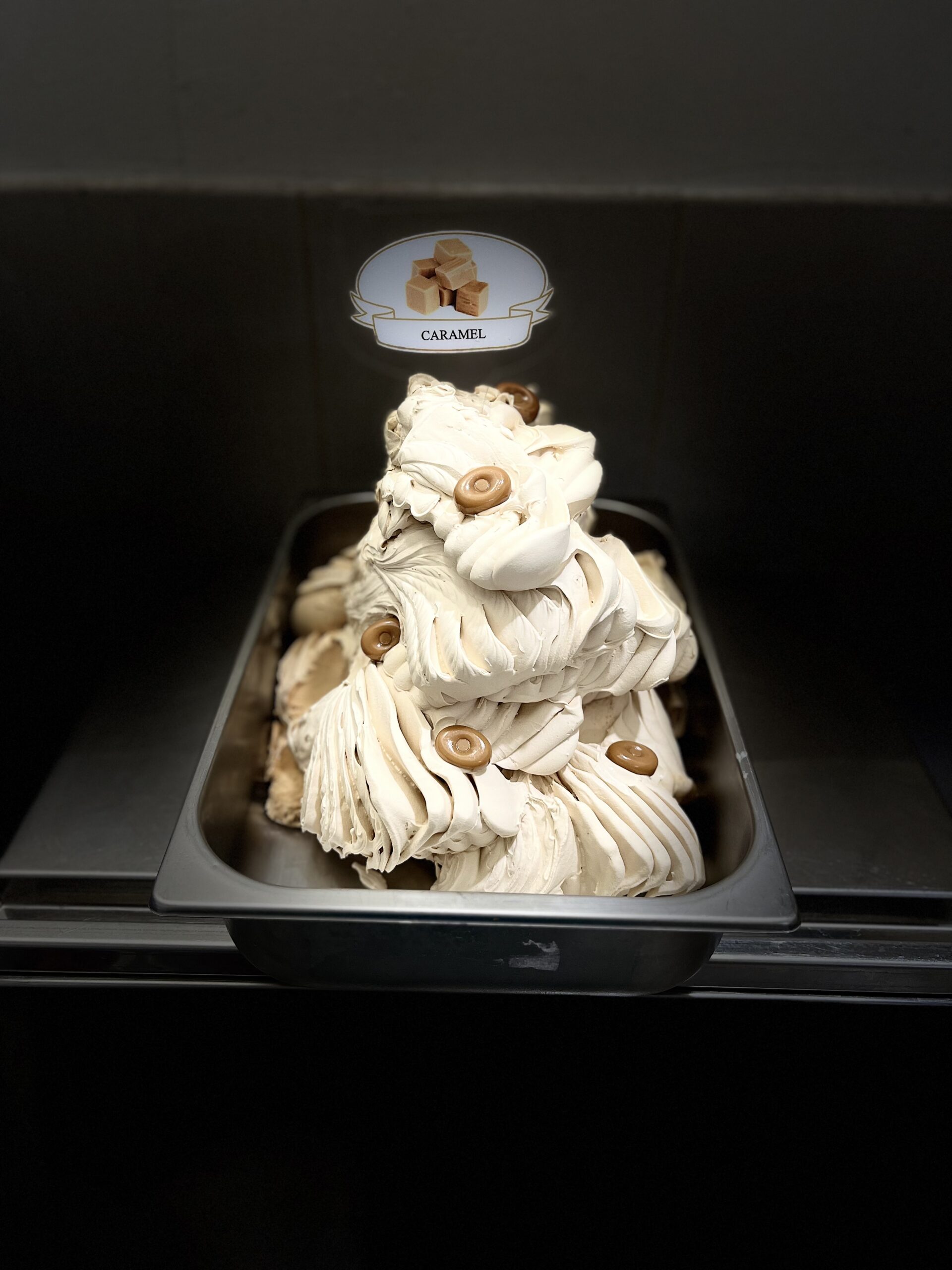 Caramel Gelato е сладолед кој носи вистинско задоволство на сетилата. Секое залче е полно со богата, кремаста текстура што веднаш се топи во устата. Слатката и длабока арома на карамелата додава неодолив вкус што го прави совршен избор за љубителите на десерти. Неговата мека златна боја потсетува на сончевите зраци во лето, додека нежната сладост создава момент на чисто уживање. Со секоја лажичка, ова гелато создава спомени на топли вечери и слатки задоволства.